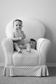 Getting this month's growth chair pic was an adventure in and of itself! And let me preface this by saying.....that just 2 months ago when sitting her in her chair.....she would just smile and bounce up and down....thinking she was hot snot, or something.